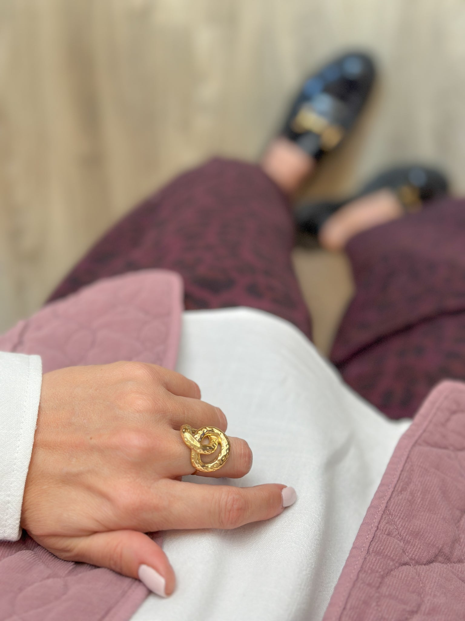 - Bague composée de 2 formes entrecroisées, martelées et ajourées