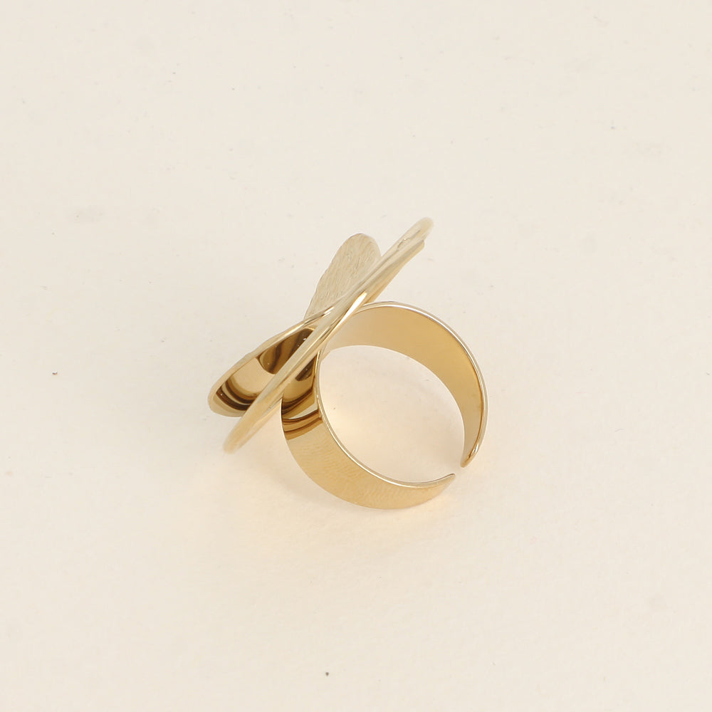 - Bague ajustable composée d'un anneau et d'une pièce ronde texturée incurvée