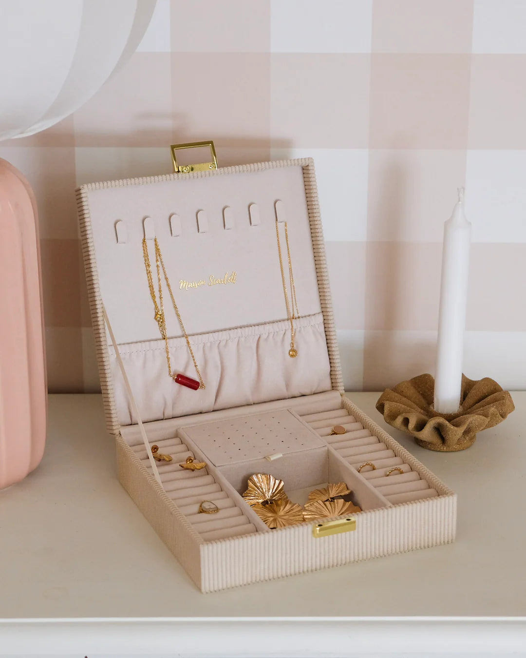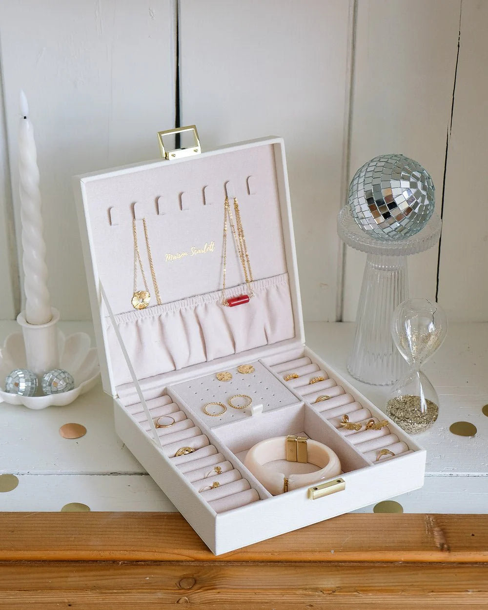 Notre boîte à bijoux Anne en cuir vegan est le coffret parfait pour les fans de bijoux et de douceur ! Elle vous permettra de ranger et protéger l’intégralité de votre collection tout en sublimant votre intérieur.
