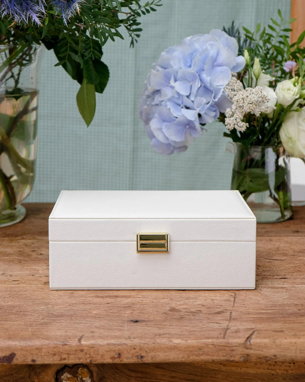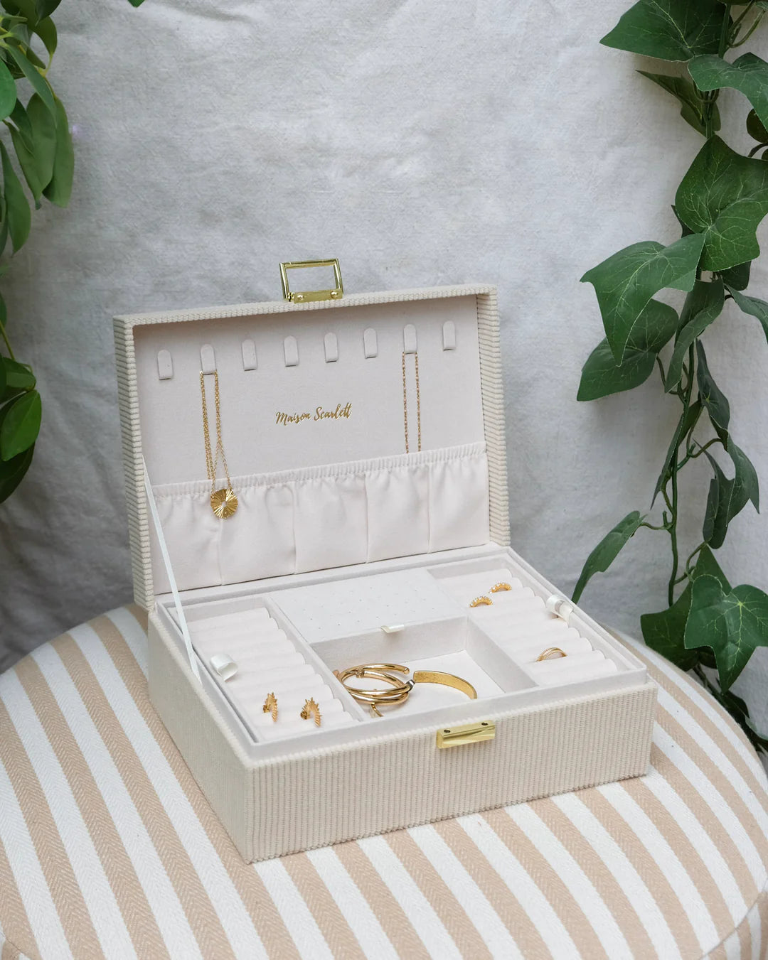 Notre boîte à bijoux Louise est le coffret parfait pour les fans de bijoux et de douceur ! Elle vous permettra de ranger et protéger l’intégralité de votre collection tout en sublimant votre intérieur.
