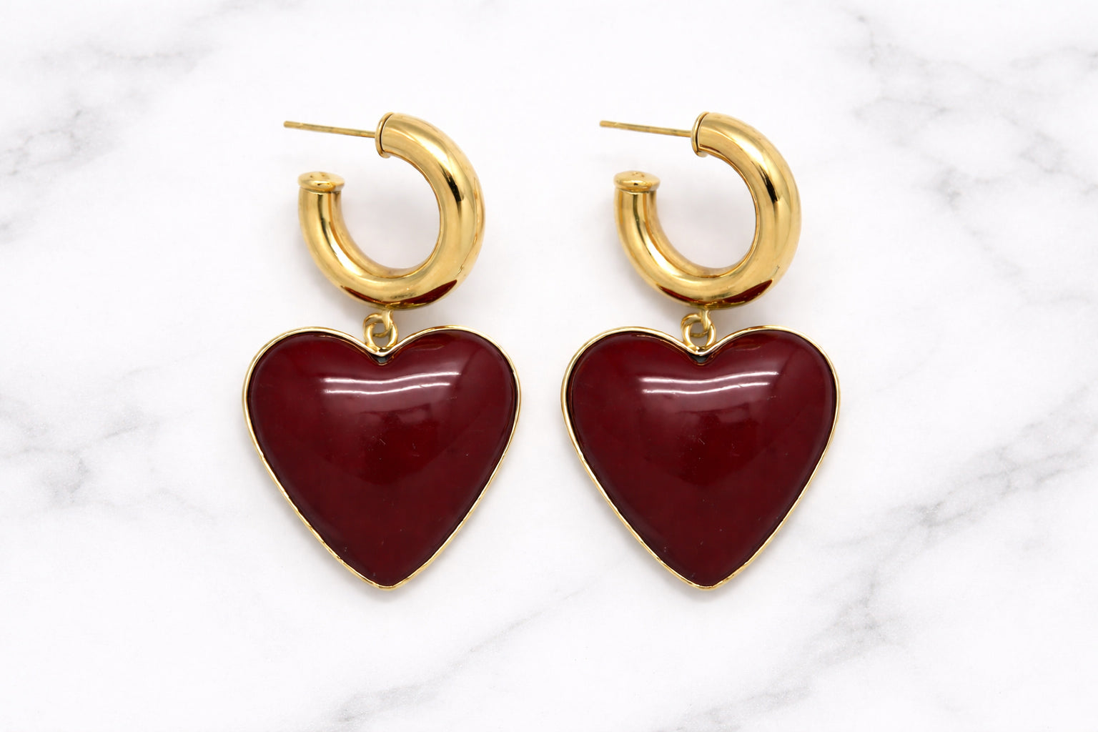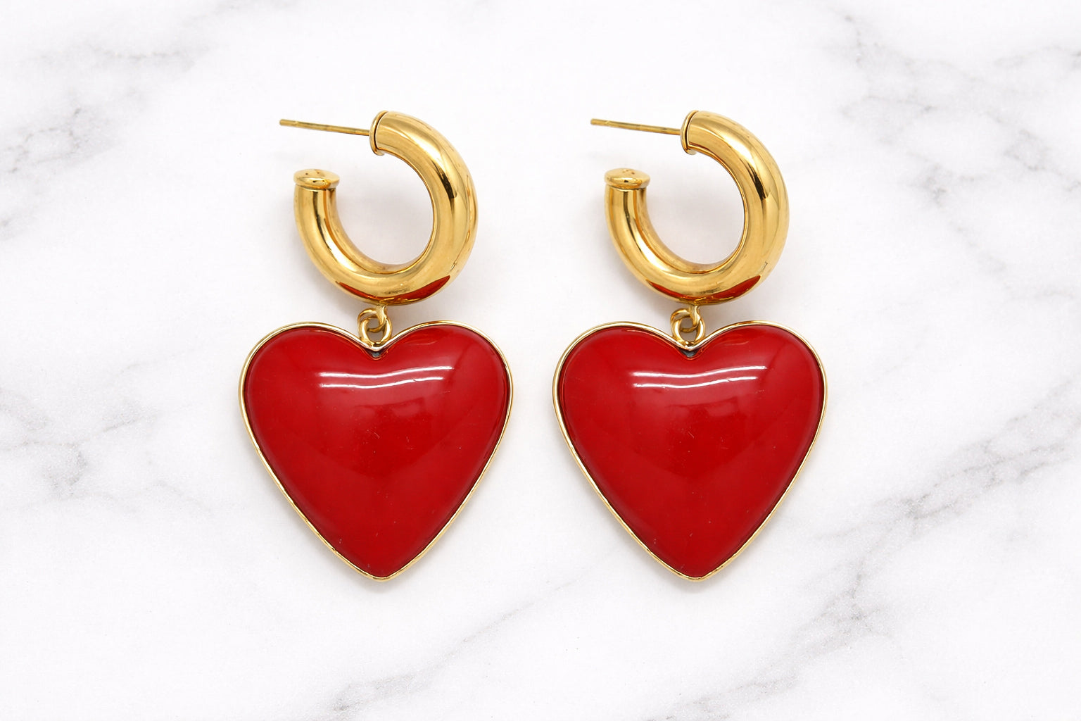 - Boucles d'oreilles type créoles composées d'un coeur émaillé