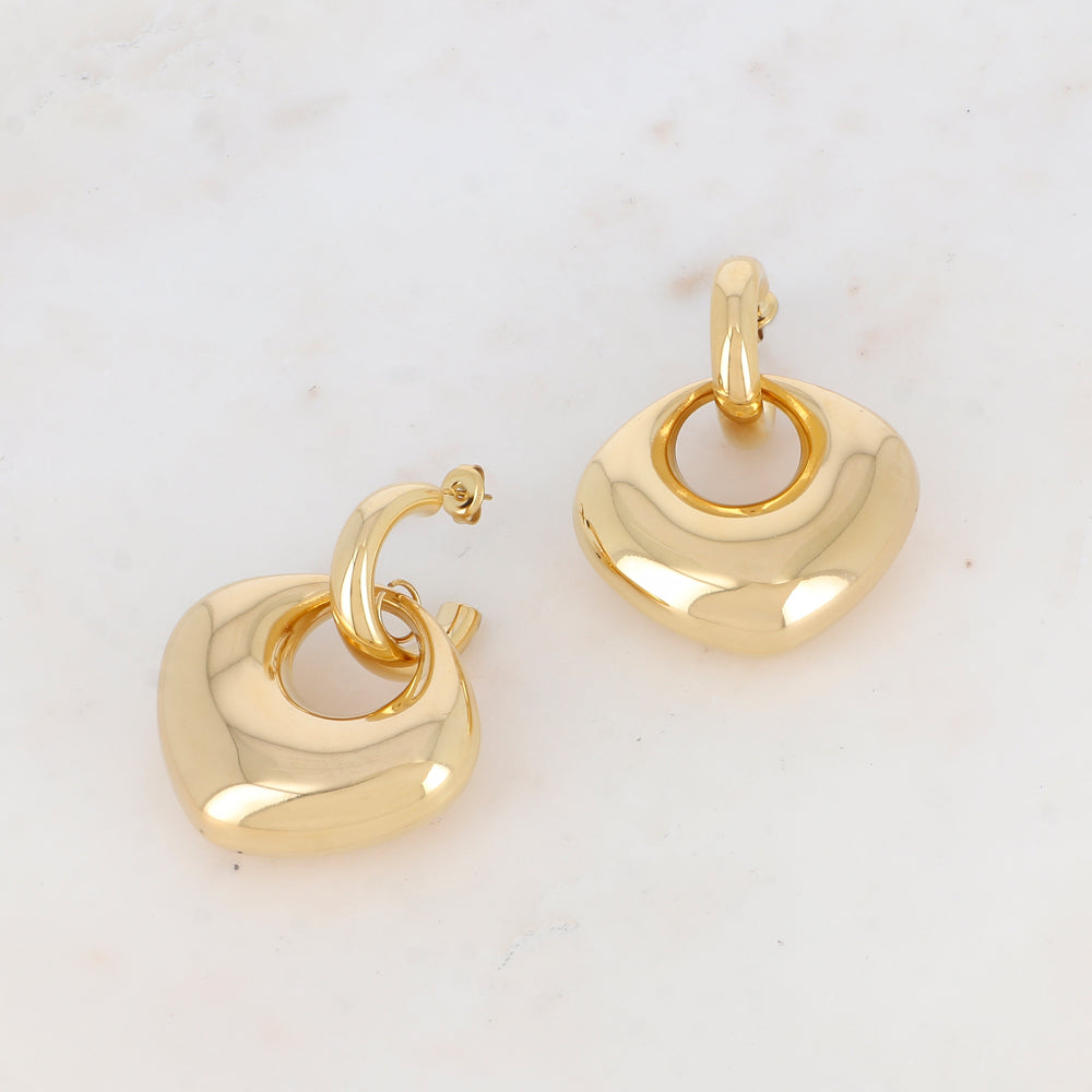 - Créoles composées d'un pendant lisse et bombé, effet miroir