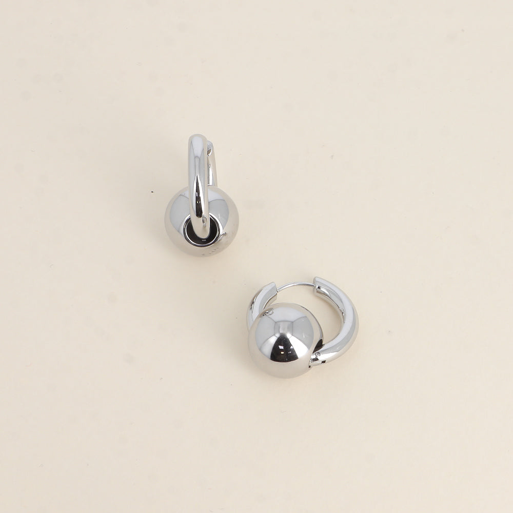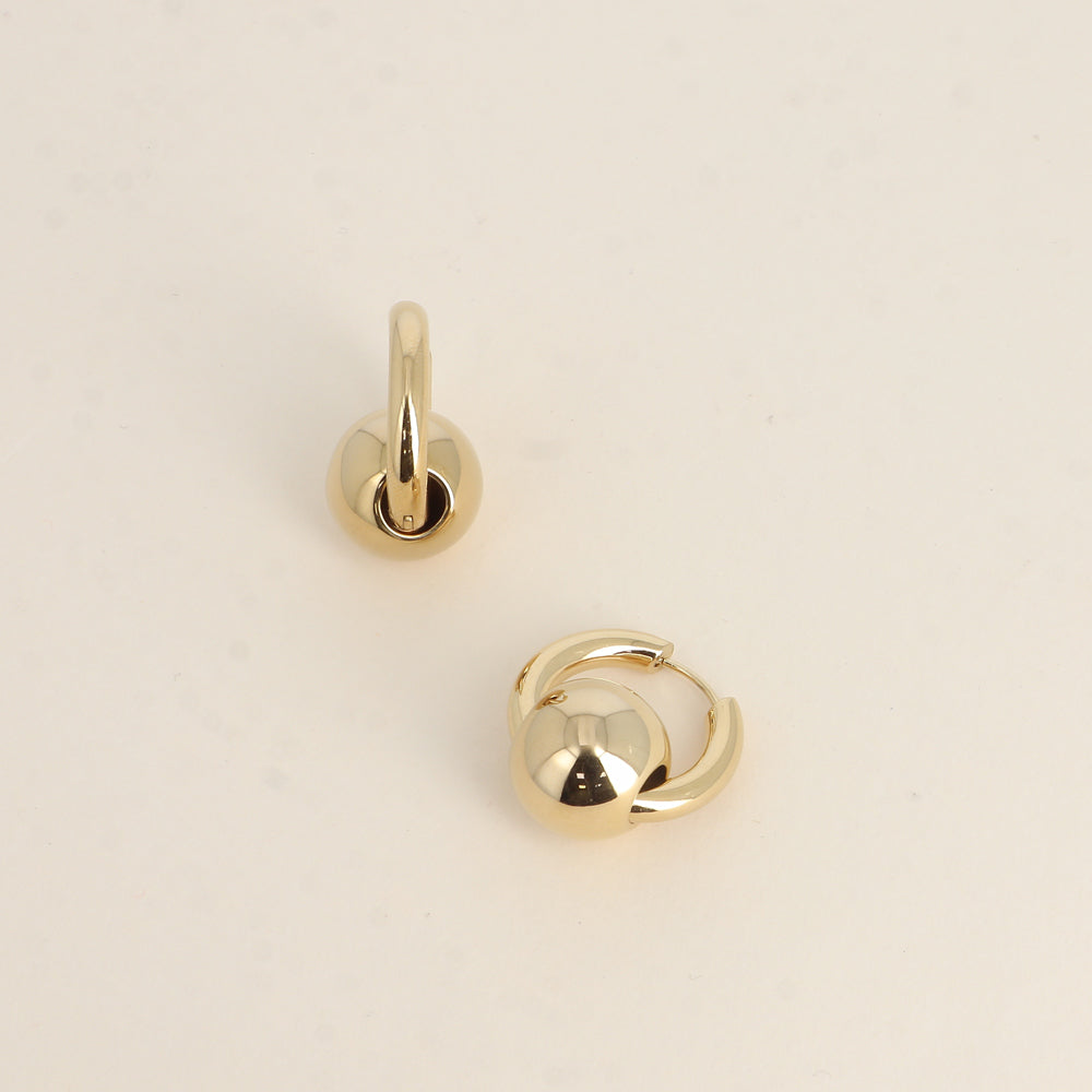- Créoles avec fermoir à charnière composées d'un anneau épais et d'une boule traversante et amovible