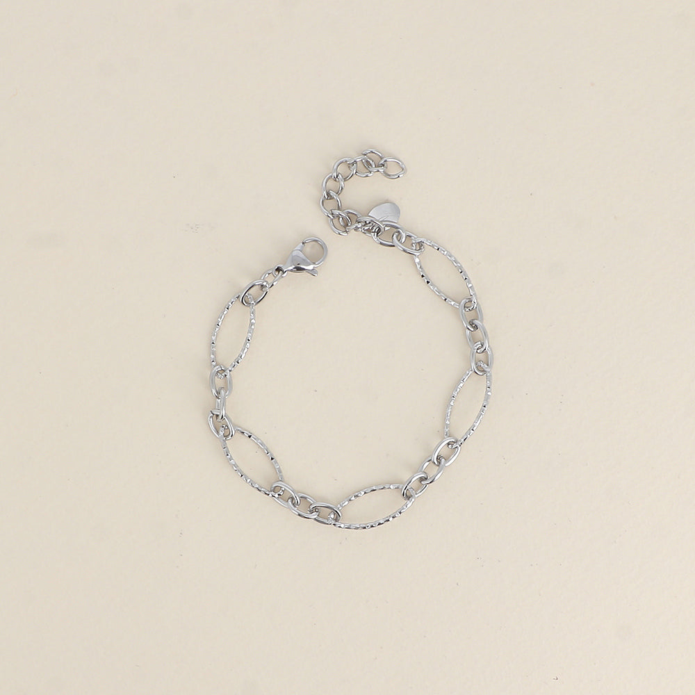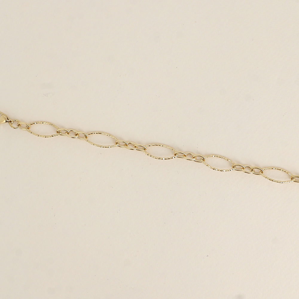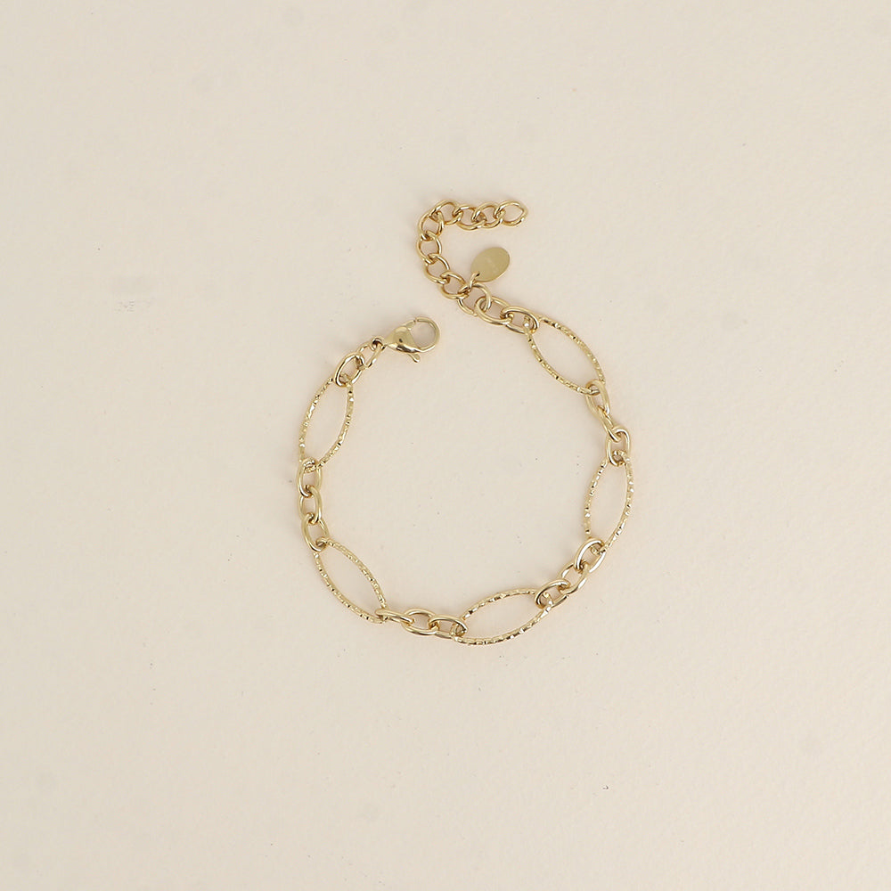 - Bracelet composé de maillons alternés ovales dentelés et de petits maillons ovales.
