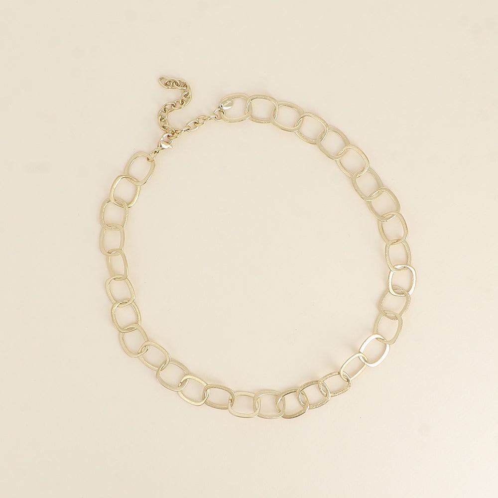 - Collier sur chaîne composé d'une maille aux grands anneaux ovales effet mat brossé