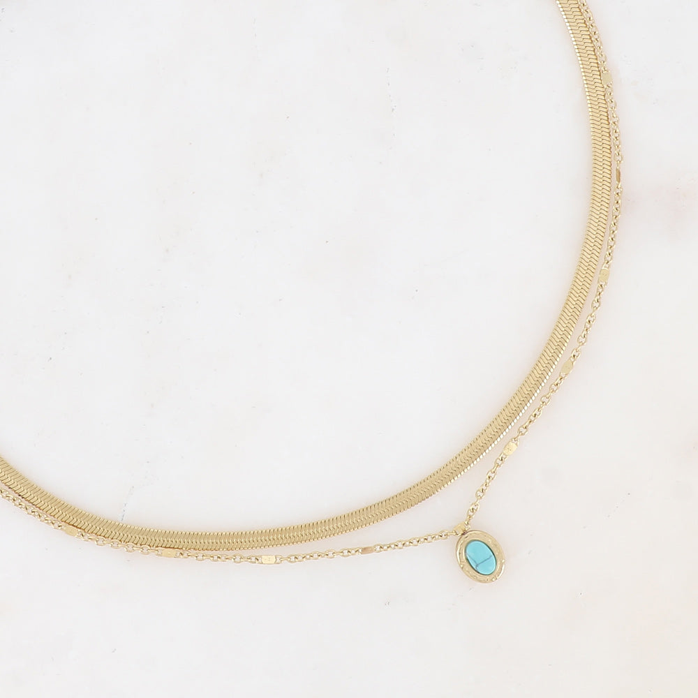 - Collier composé d'une maille miroir et une maille forçat avec un pendentif ovale en pierre naturelle.