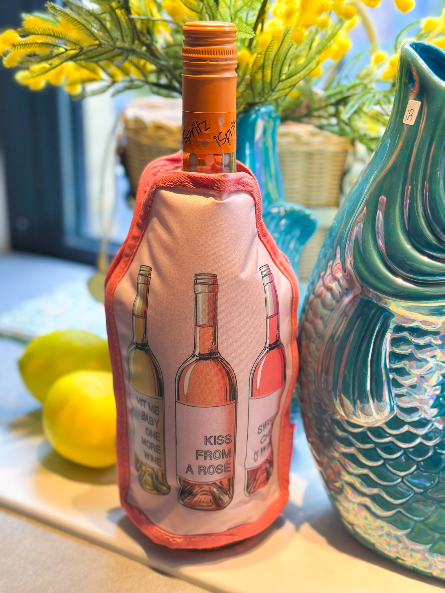 La housse de refroidissement garde vos boissons au frais avec style. Ses motifs originaux apportent une touche originale à vos apéritifs. Le gel réutilisable maintient le vin, le champagne ou l'eau à la température idéale. Flexible s'adapte à toutes les tailles de bouteilles. A mettre au congélateur et profitez – parfait pour les barbecues, les fêtes d'été ou comme cadeau unique.