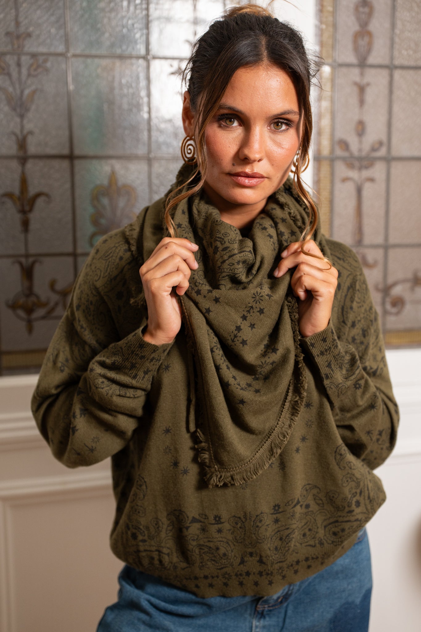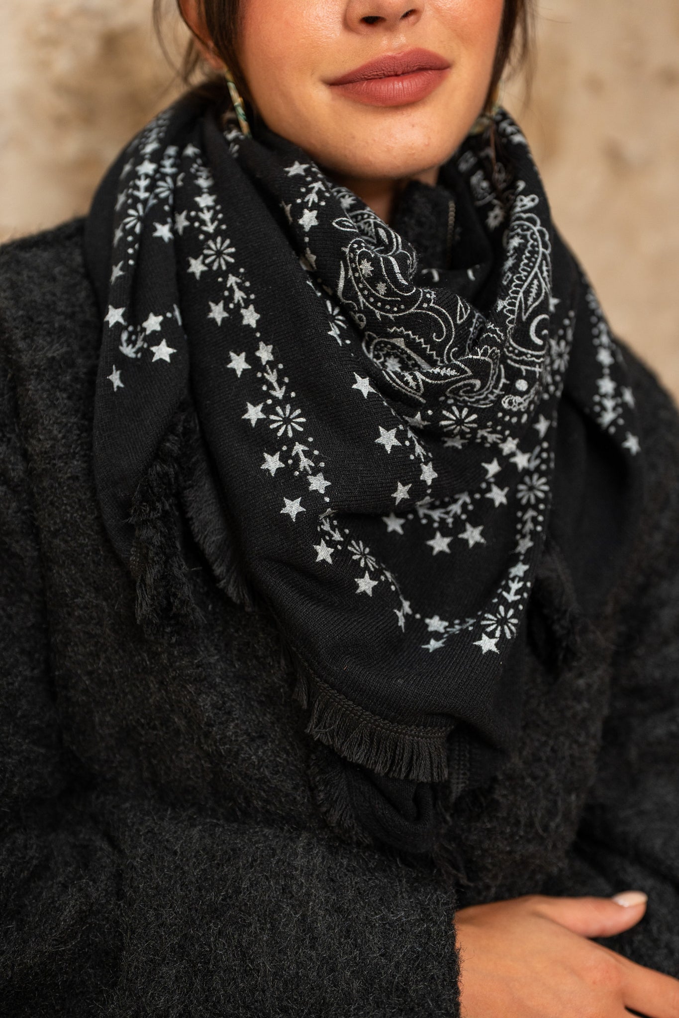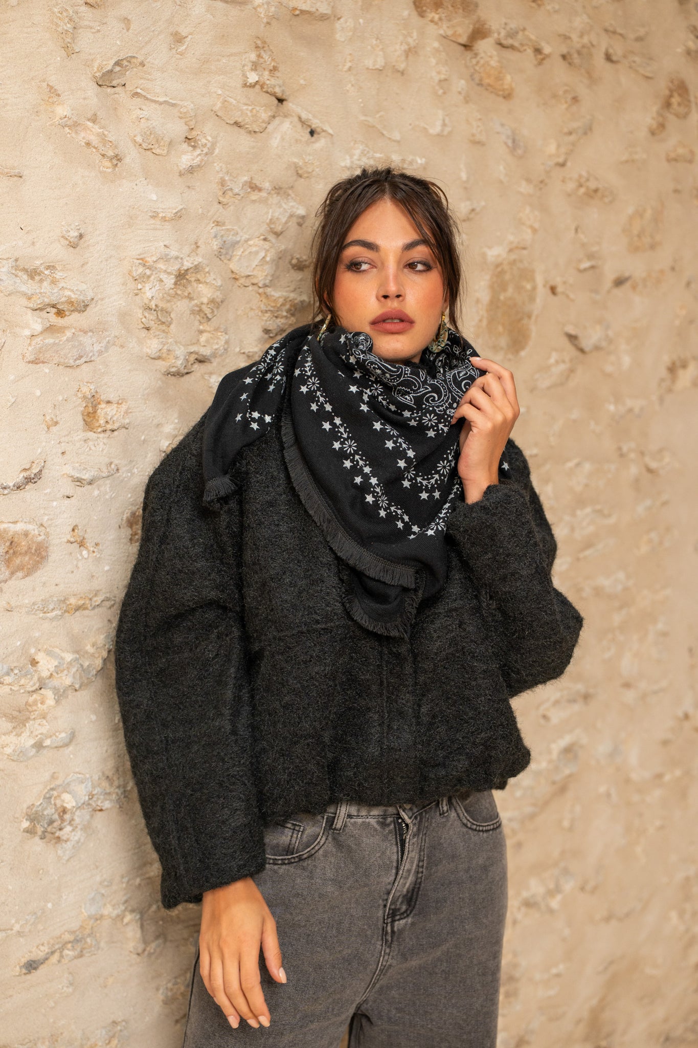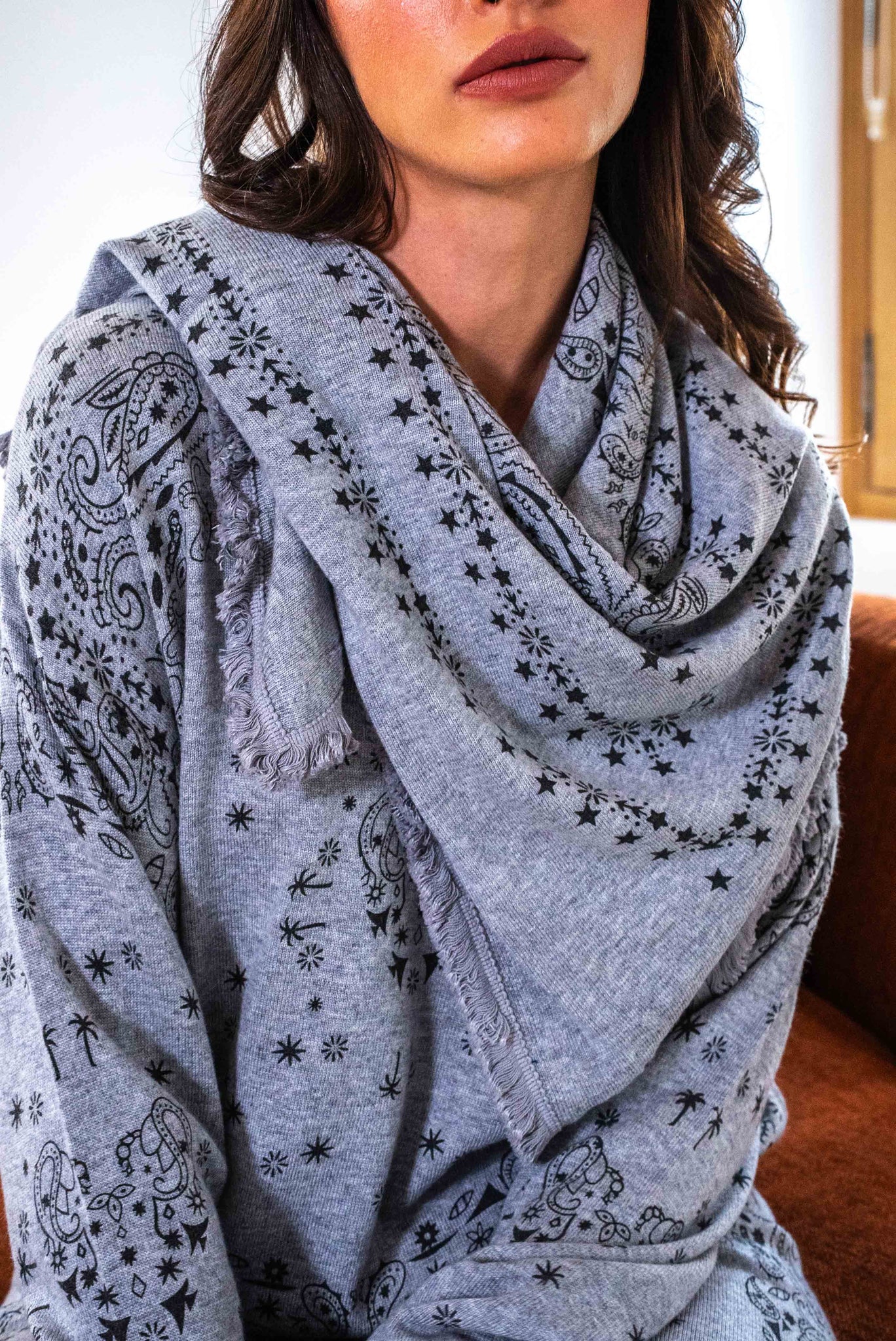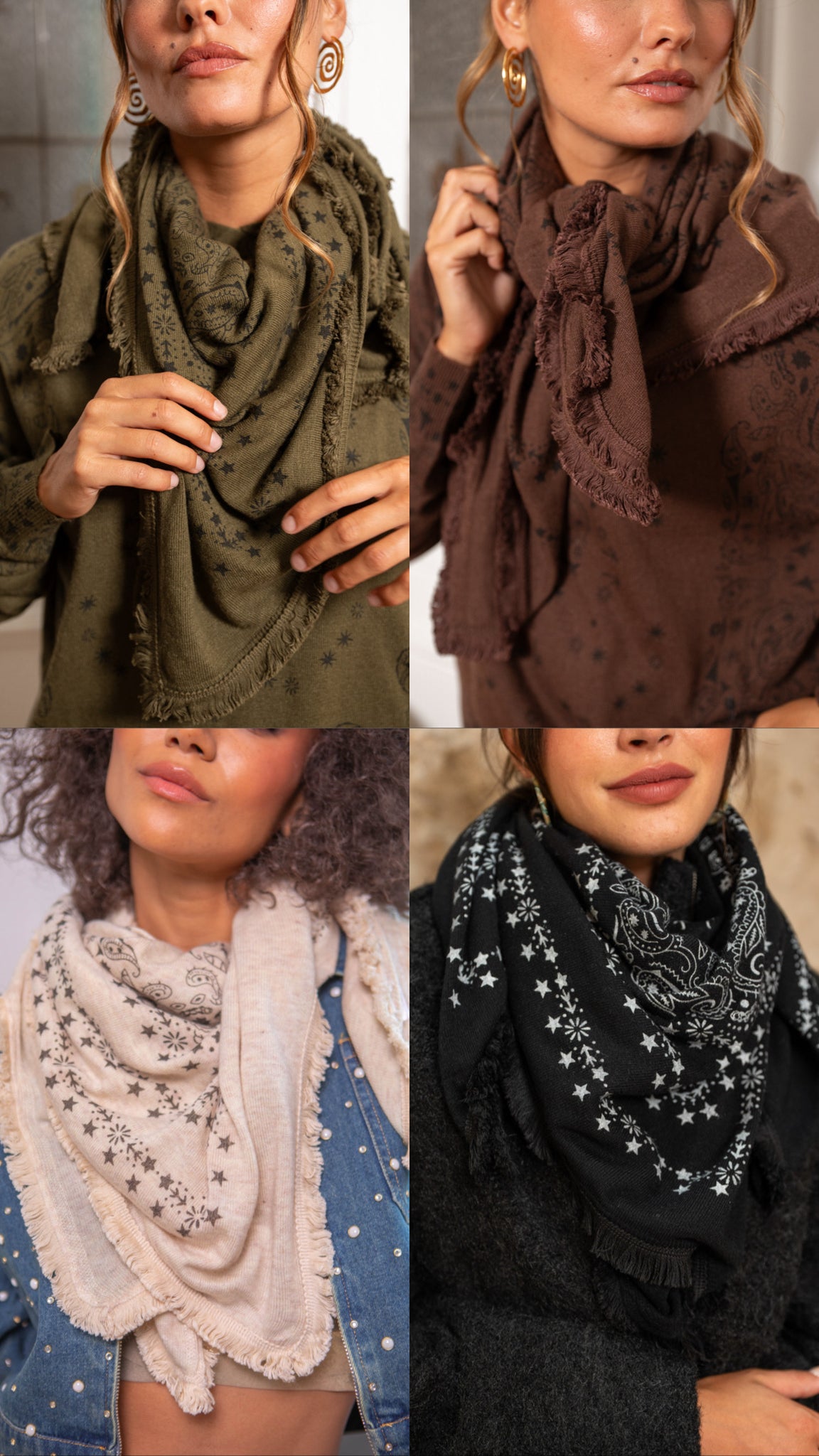 Écharpe façon bandana – Douceur & style : Adoptez l’accessoire qui fait toute la différence : notre écharpe façon bandana allie confort et tendance. Avec ses motifs subtils et son tombé élégant, elle apporte une touche bohème chic à toutes vos tenues.