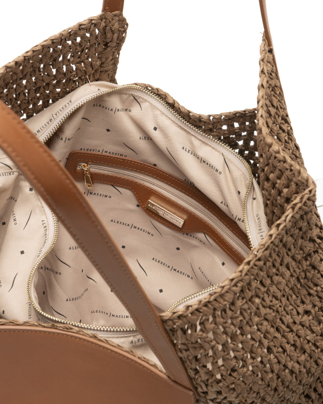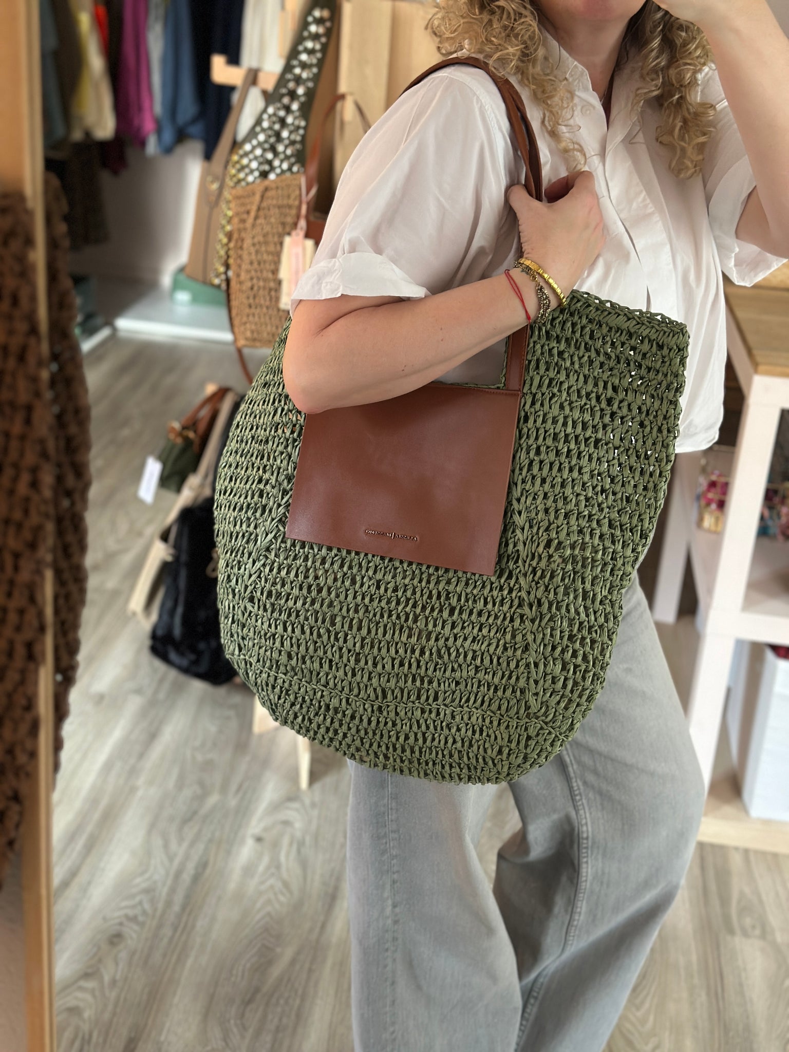 Découvre ce grand cabas souple au style naturel et contemporain, confectionné en tressage souple et sublimé par une poche extérieure en cuir vegan qui signe sa silhouette avec élégance. Son format généreux en fait le compagnon idéal des journées actives, des escapades d’été ou des looks casual chic.