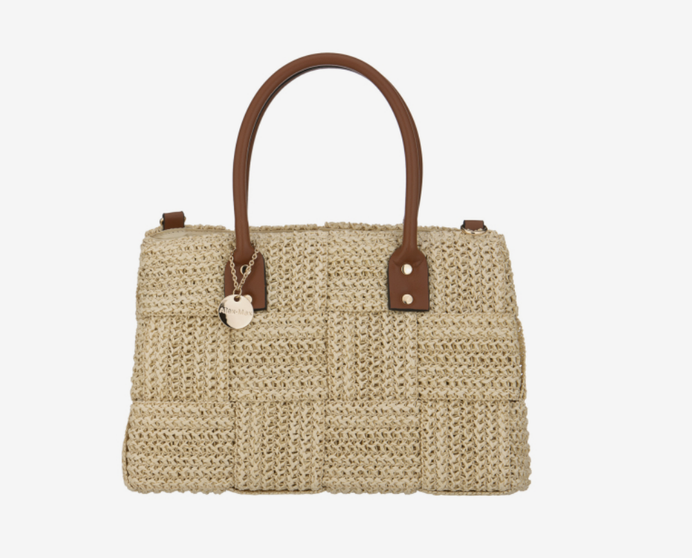 Découvre ce sac au design structuré, réalisé en tressage travaillé avec un effet quadrillé subtil, rehaussé de poignées en cuir vegan pour une allure élégante et moderne. À la fois raffiné et facile à porter, il accompagne aussi bien les looks du quotidien que les silhouettes plus habillées.