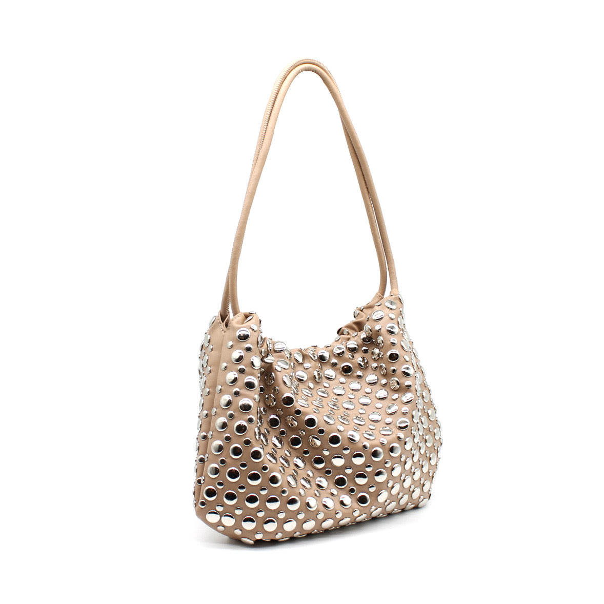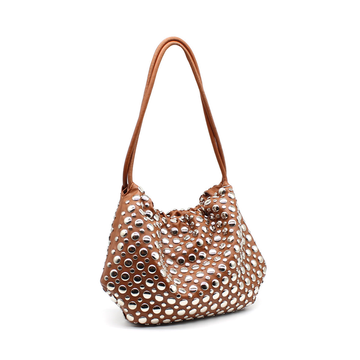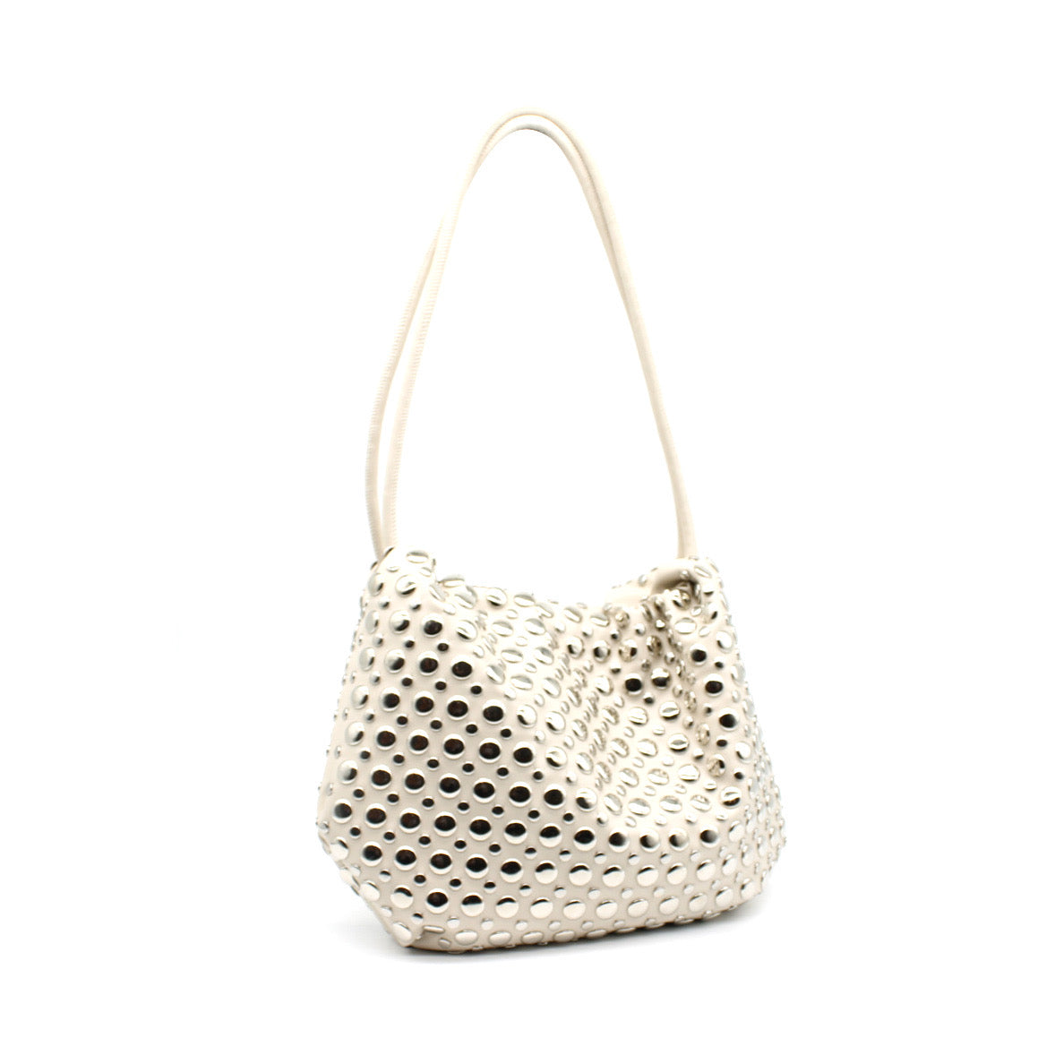 Découvre YARINA, un sac en cuir vegan souple, sublimé par une constellation de clous argentés qui lui confèrent une allure sophistiquée et affirmée. Sa fermeture discrète par pression, associée à des anses coulissantes permettant de resserrer délicatement le sac, souligne un design à la fois moderne et fonctionnel.